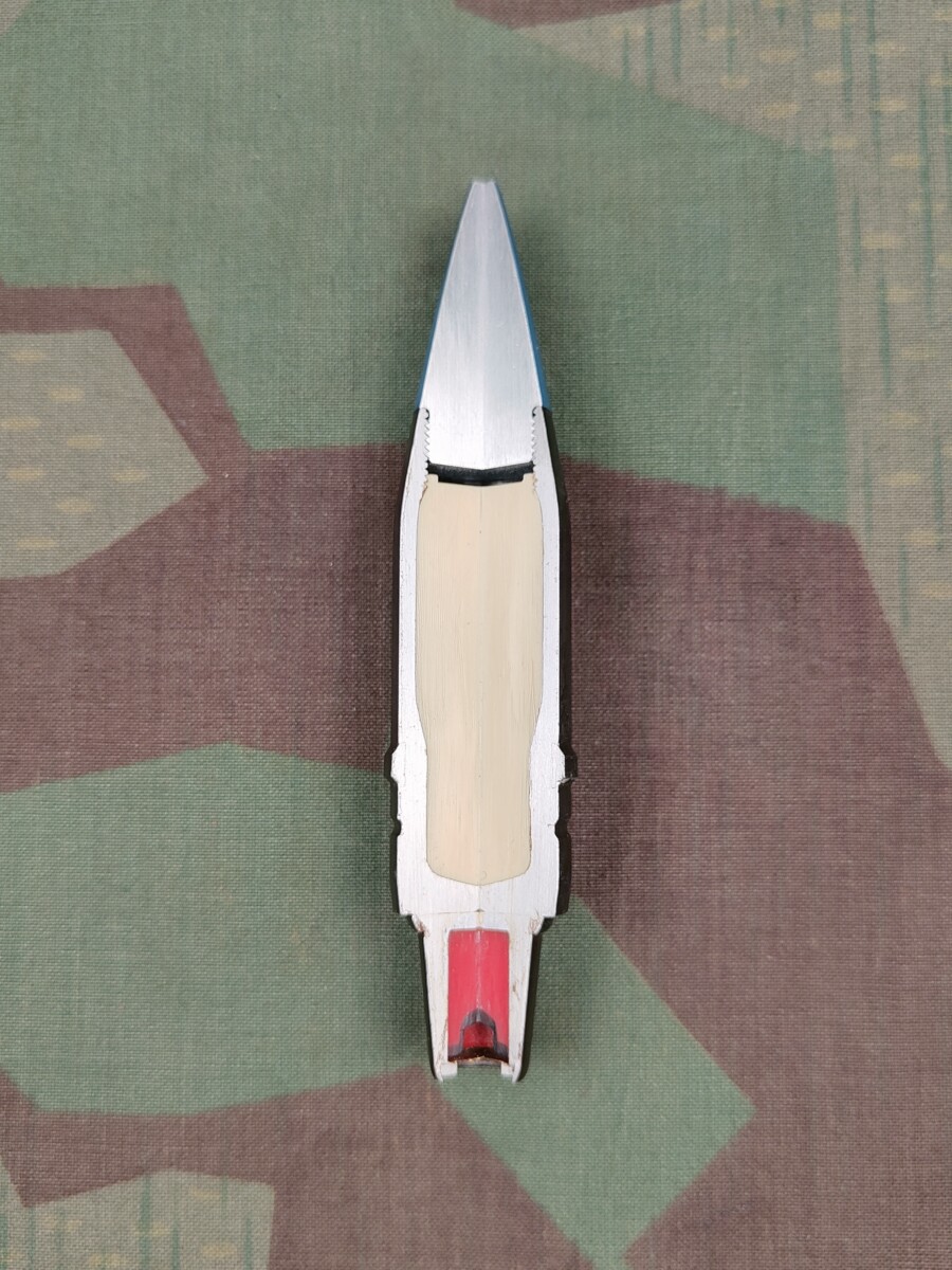 25 mm Übungsgranate mit Kerngeschoss, Leuchtspur und Kunststoffführungsband, zu Oerlikon Kanone, Schnittmodell