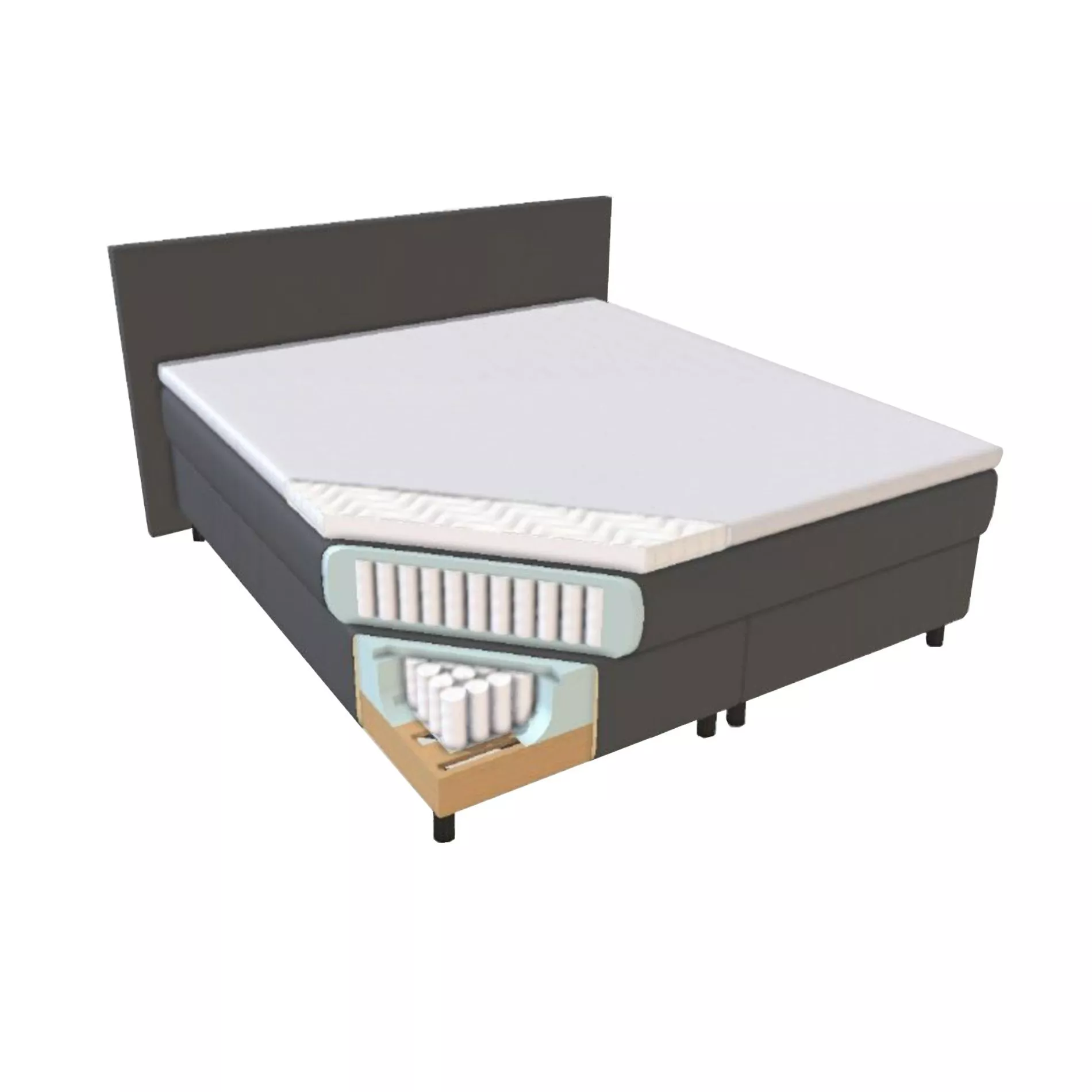 Neben einem perfekten Liegekomfort bietet das Boxspringbett außerdem ein modernes Design und lässt sich durch das schlichte Grau wunderbar mit anderen Möbeln kombinieren. Die Füße aus Holz in Schwarz runden den zeitlosen Look gekonnt ab und verfeinern das schicke Gesamtbild auf einfache Weise.