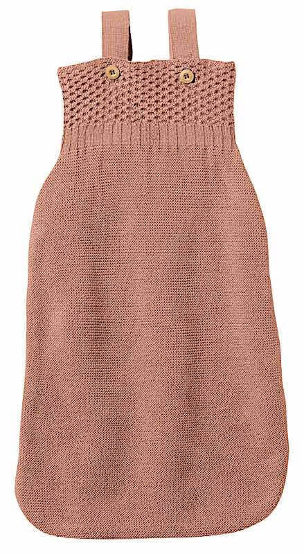Der Schlummmersack wird mit einem feinen elastischen Feinstrick gewebt und mit 2 Holzknöpfen für die Träger verziert. An den Beinchen bietet er geräumig Platz zum Strampeln, insgesamt aber ein warmes Gefühl von Geborgenheit.