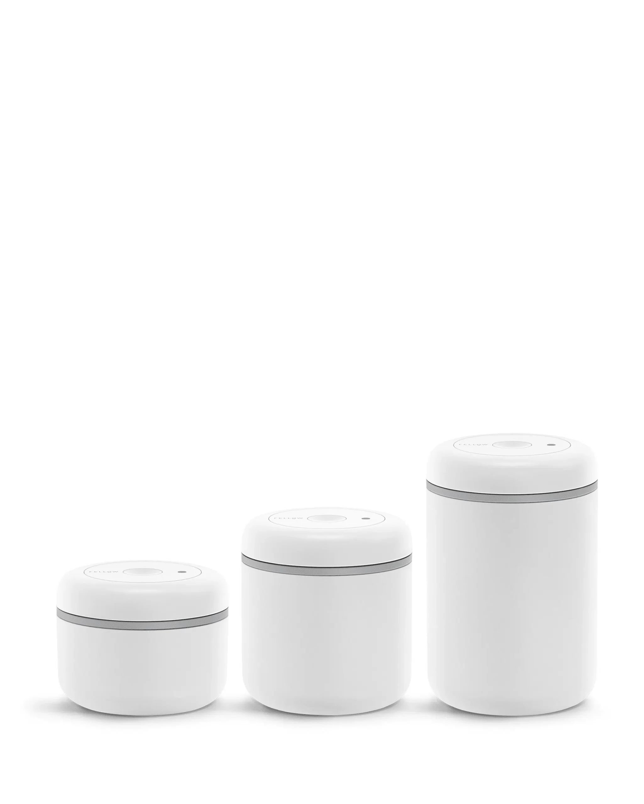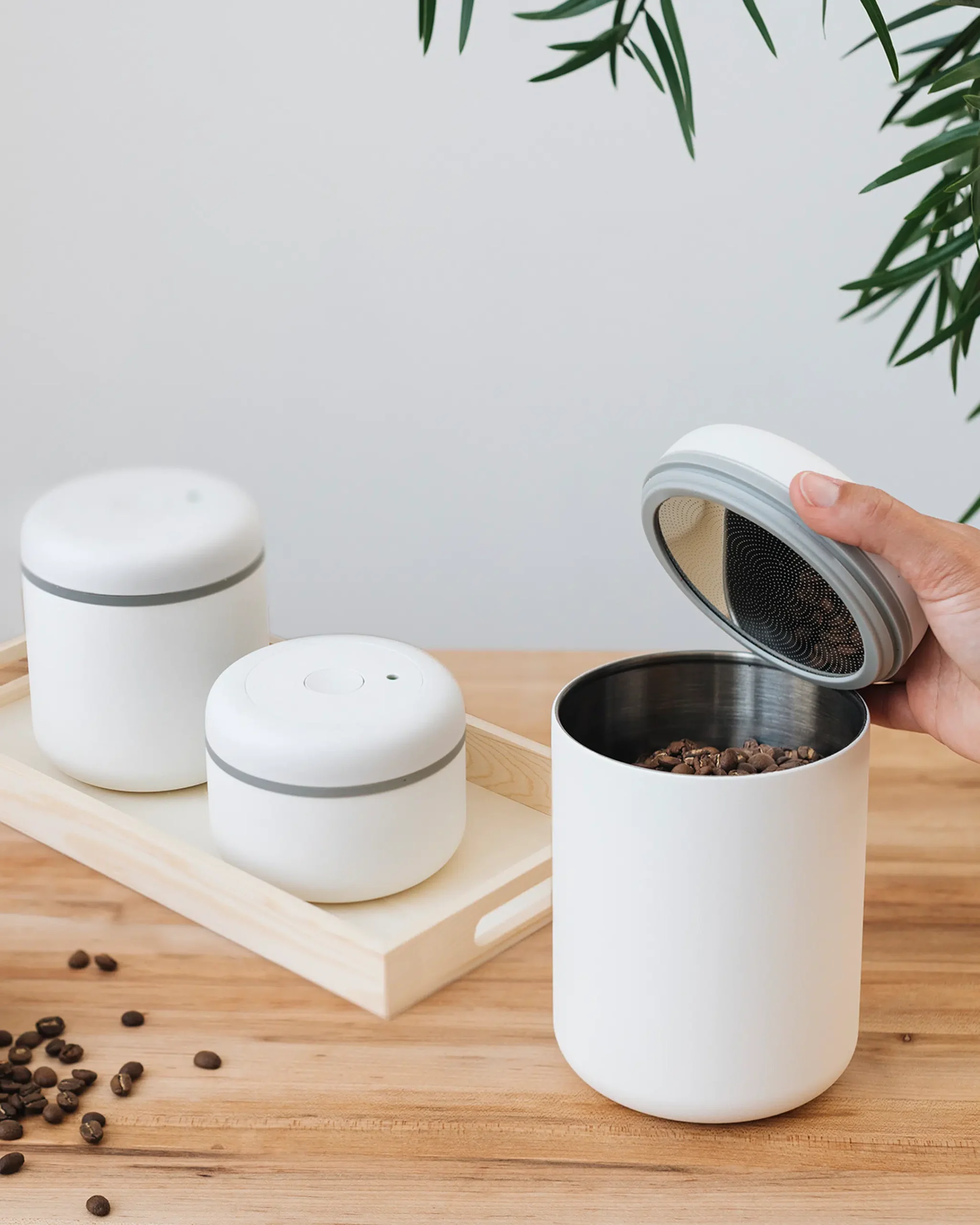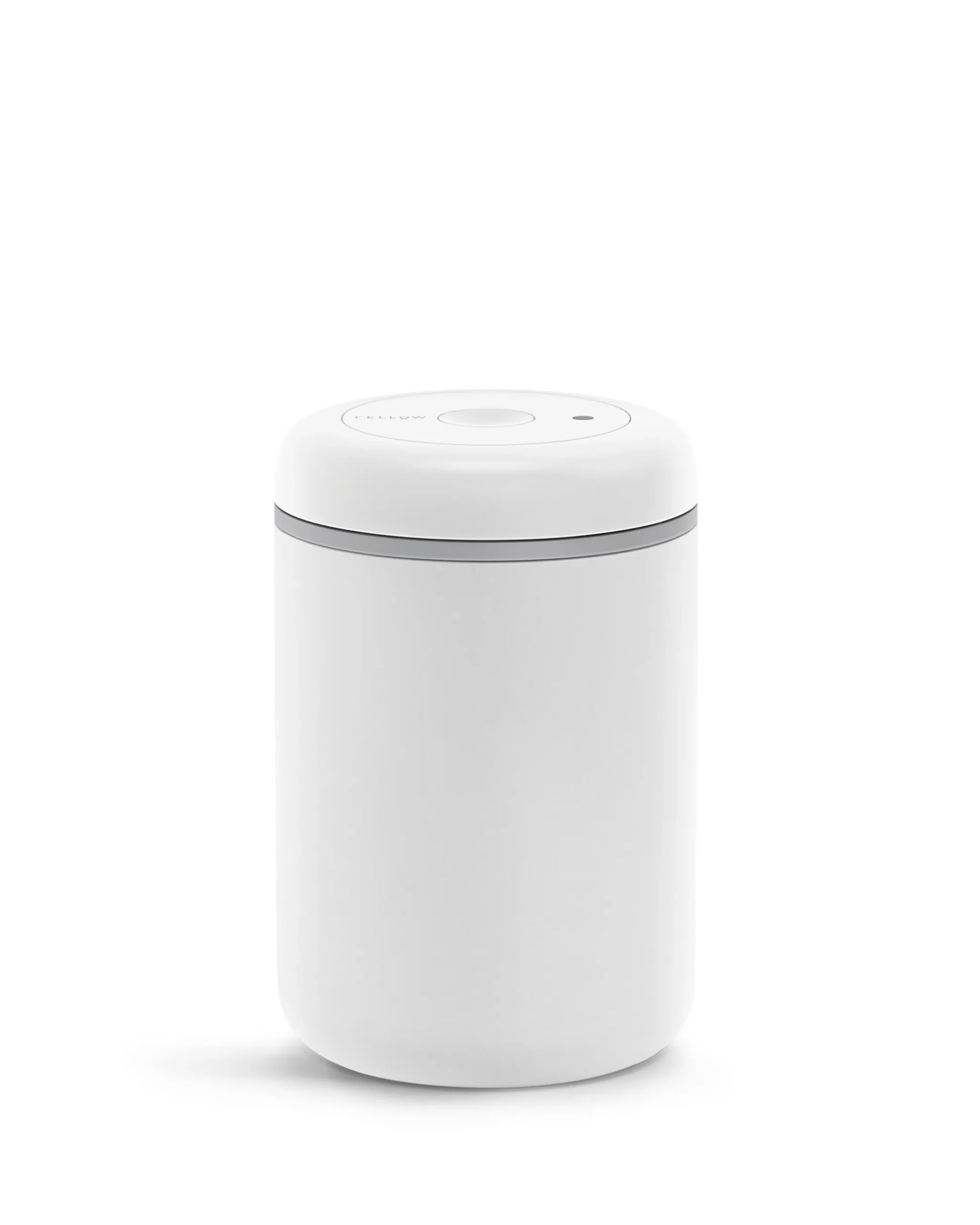 Der Atmos Vakuum Bohnenbehälter in Matte White (1.2L) ist von Fellow speziell für die Aufbewahrung von Kaffeebohnen entwickelt worden. Mit dem Vakuummechanismus kannst du die Bohnen bis zu 50% länger frisch halten. Sauerstoff entzieht in kürzester Zeit sehr viele Aromen von Kaffeebohnen, daher ist es besonders wichtig, deine teure Bohnen gegen Luft & Feutigkeit zu schützen.