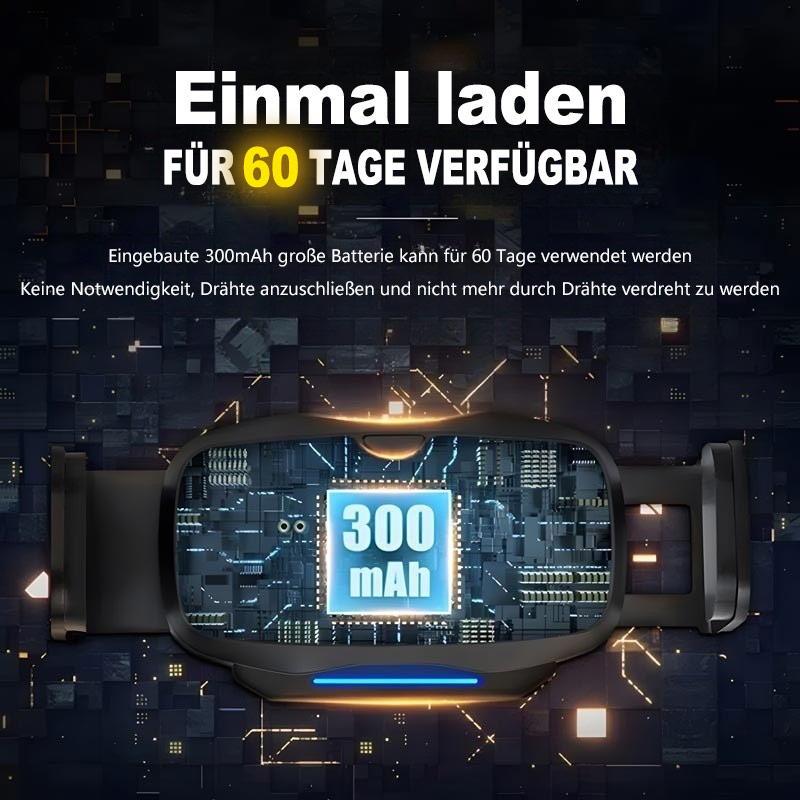4. Langlebige Leistung: Die Akkukapazität beträgt 300 mAh und kann mit einer einzigen Ladung etwa 60 Tage lang verwendet werden. Bei Benutzung leuchtet das Logo in der Mitte der Halterung auf. Die Batterieanzeigeleiste unten erinnert Sie daran, ob der Akku ausreichend ist. Bitte achten Sie auf den Ladevorgang.