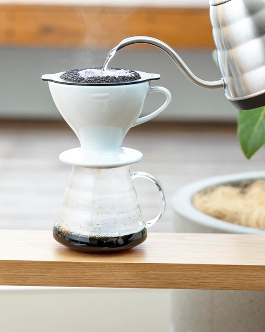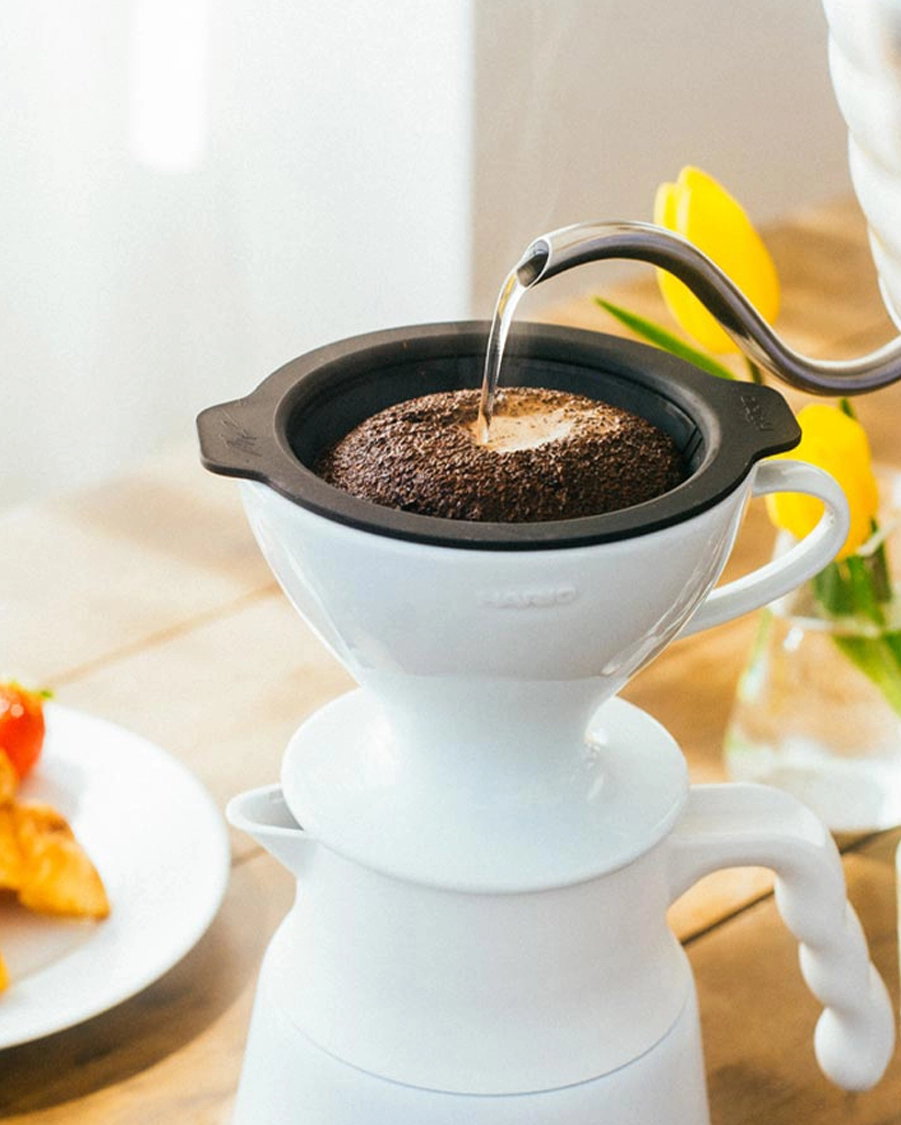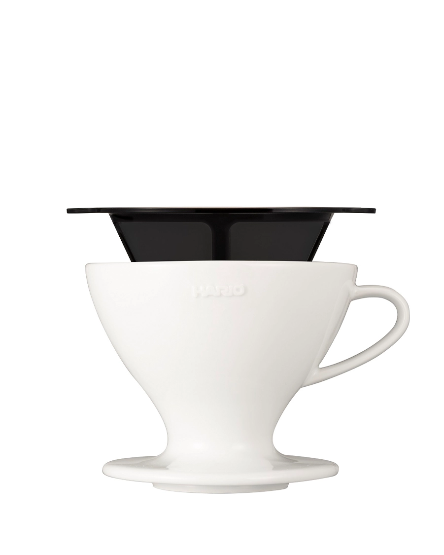 Der erste Hario W60 Keramik Hand-Kaffeefilter in Weiß in der Größe 02 inklusive einem Flachboden Mesh-Filter. Mit dem neuen W60 Hand-Kaffeefilter kannst du nun bis zu drei verschiene Zubereitungsmethoden den Kaffee brühen.