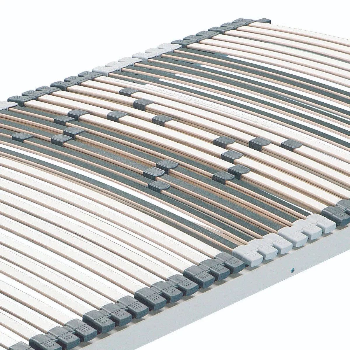 Der Lattenrost besteht aus insgesamt 42 Mehrschicht-Federholzleisten, welche in flexiblen, dauerelastischen Kautschukelementen gelagert sind. Dadurch passen sich die einzelnen Leisten optimal Ihrem Körper an. Die Schulter- und Beckenabsenkung durch flexible Kautschuk-Kappen sorgt für noch mehr nächtlichen Komfort. Außerdem können Sie bei Hafida ganz individuell den Härtegrad im Becken- und Lodorsenbereich regulieren. So passt Sich das Lattenrost optimal Ihrem Körper und Ihrer Matratze an.