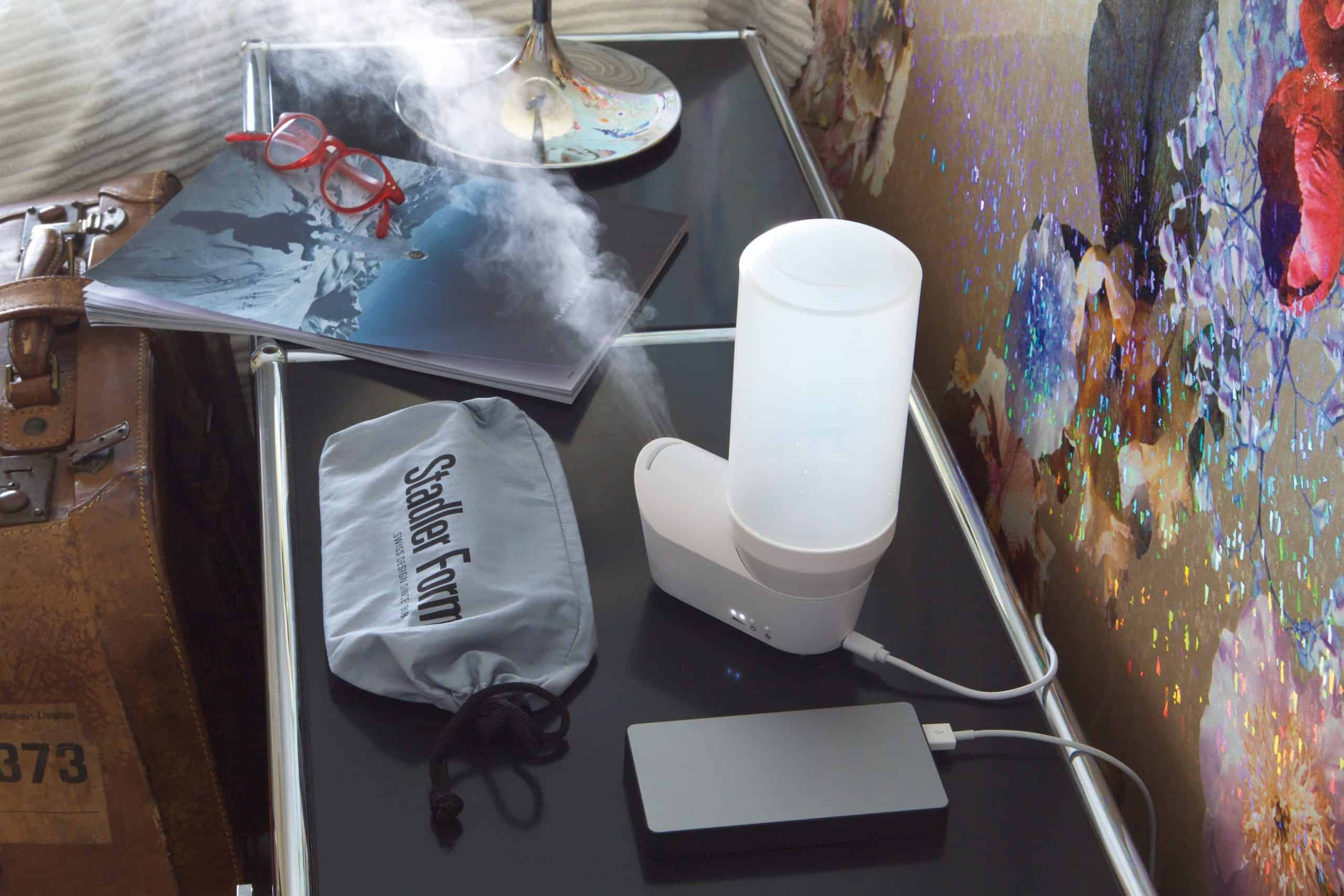 Emma ist der persönliche Luftbefeuchter, der für eine optimale Luftfeuchtigkeit sorgt. Ausgestattet mit einem USB-Kabel für den mobilen Einsatz und einem Stromadapter für den Gebrauch zu Hause, wird Emma zur ständigen Begleiterin. Sie liebt das Reisen und sollte im Reisegepäck nicht fehlen. Daher wurde Emma leicht und kompakt designt: Das Gehäuse lässt sich platzsparend in der Flasche verstauen und ist im praktischen Reiseetui immer mit dabei. Mit zwei Leistungsstufen ausgestattet, kann die Befeuchtungsleistung individuell angepasst werden. Der handliche Luftbefeuchter ist ideal fürs Schlafzimmer geeignet, da er kaum auffällt: Auf niedriger Stufe arbeitet Emma sehr leise, und ihre LEDs sind dimmbar oder können bei Bedarf komplett ausgeschaltet werden.