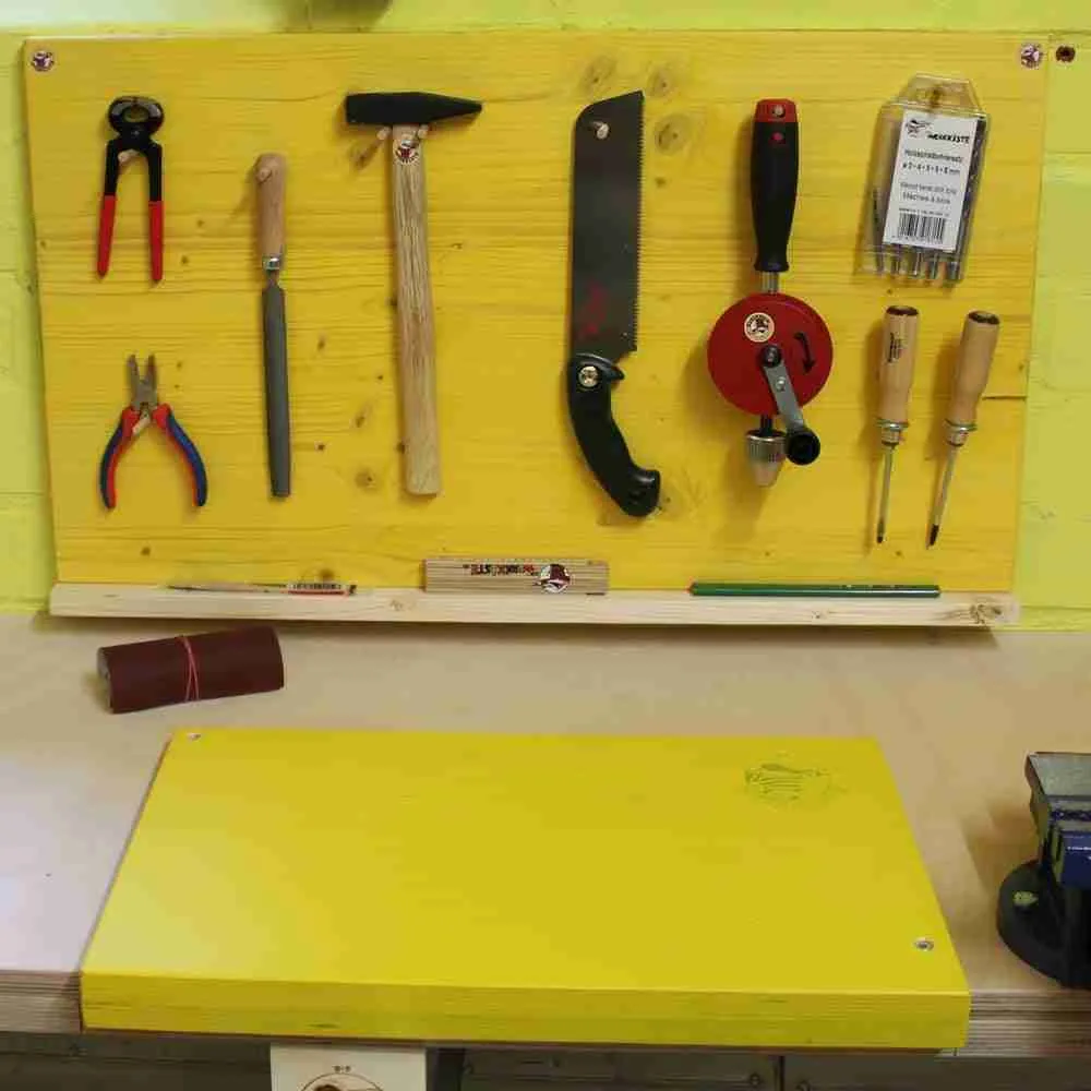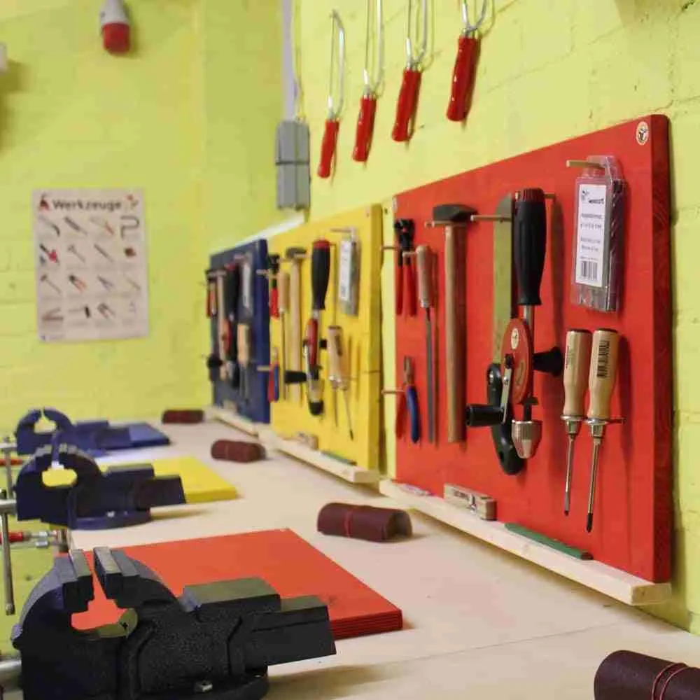 Tipp: Zeichnet die Umrisse der Werkzeuge an ihren jeweiligen Platz mit einem Stift nach, so findet ihr – auch wenn viele Werkzeuge in Benutzung sind – immer den richtigen Platz.
