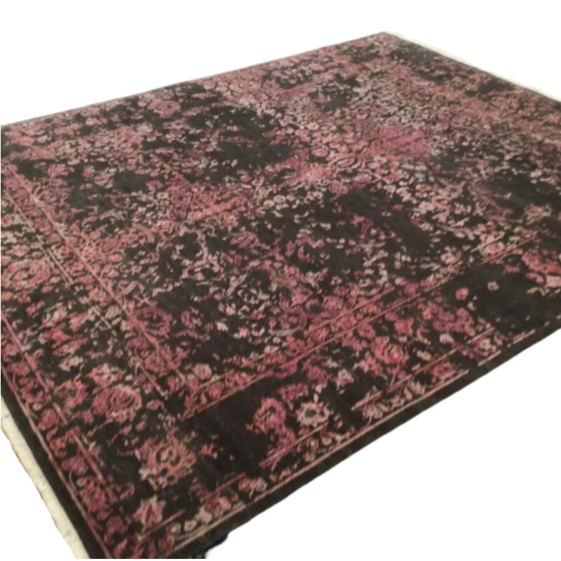 Zeitloser Teppich aus Seide in den Farben braun, beige und rosa.