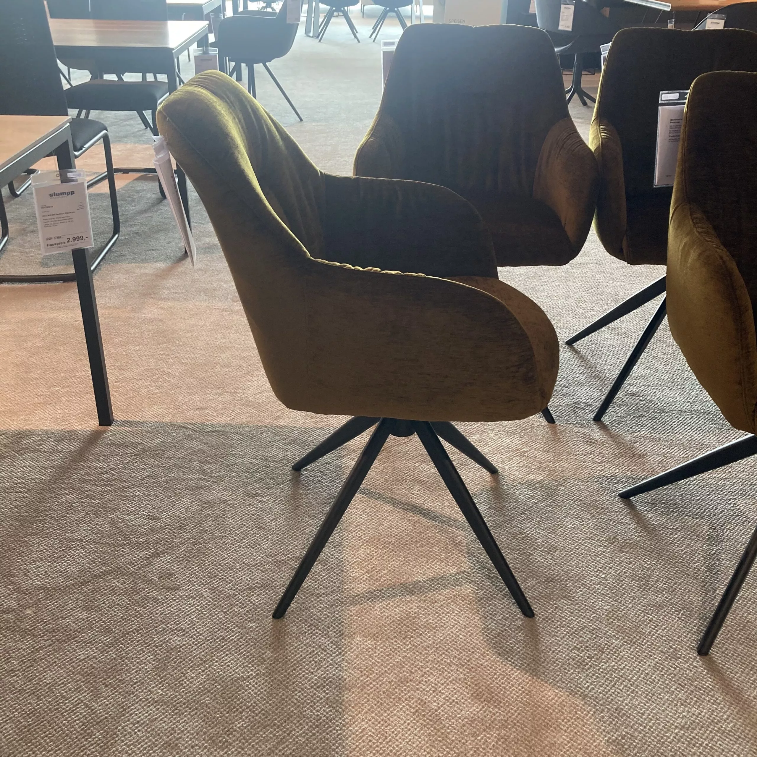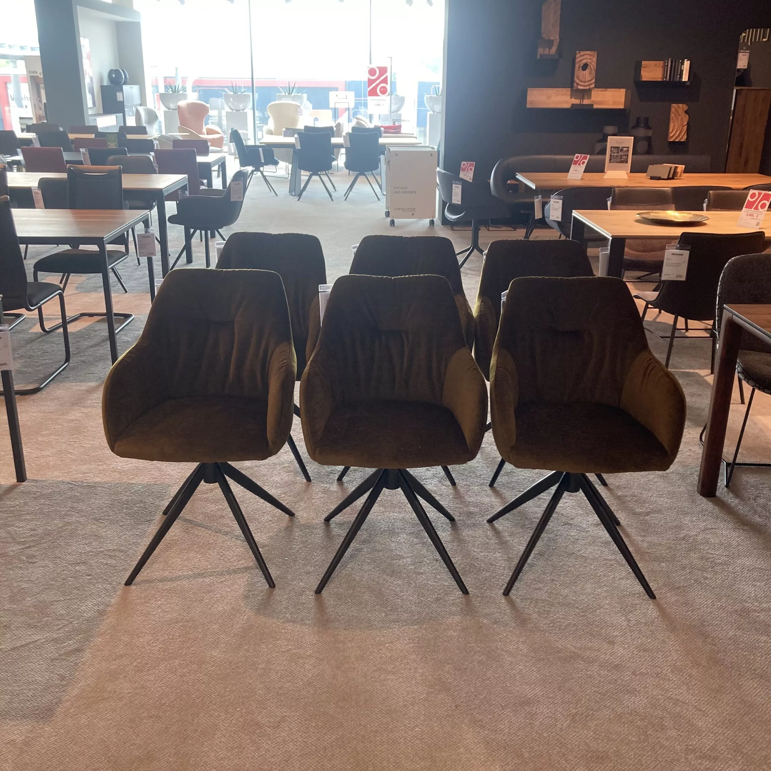 Die Stuhlgruppe Noli von Nouvion vereint Komfort und Design: 6 drehbare Armlehnstühle mit Wippfunktion bieten ergonomisches Sitzen. Der Bezug aus Stoff Loft Army in Pistaziengrün harmoniert perfekt mit dem schwarzen Sparkfuß-Gestell aus Stahl stilvoll, modern und ideal für gesellige Runden. Die Stuhlgruppe kann gerne vor Ort in unserer Ausstellung in Stockach besichtigt werden.