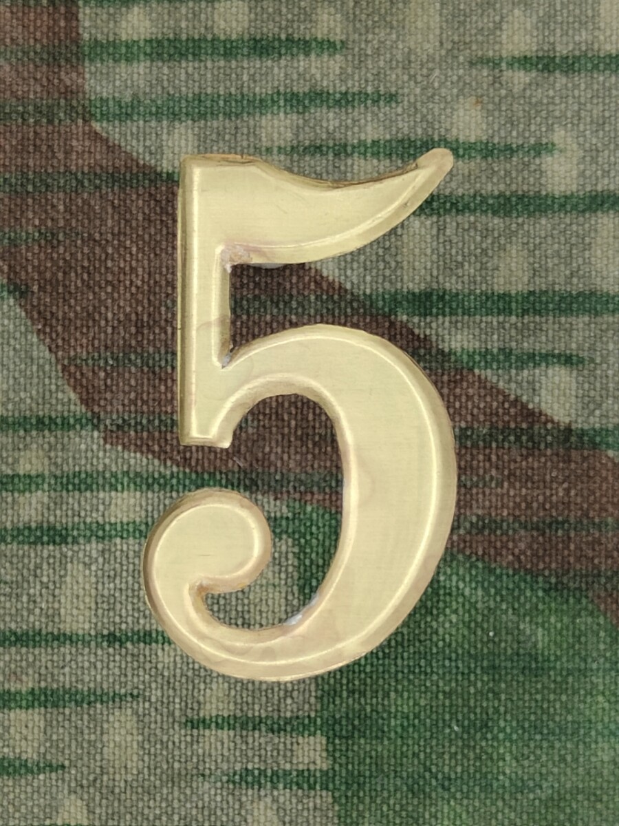Die Nummer ist aus Knopfmetall gefertigt und misst ca. 31.7 mm in der Höhe. Die Nummer wird oberhalb des Schirms am Hutband mittels Befestigungsdrähten montiert.
