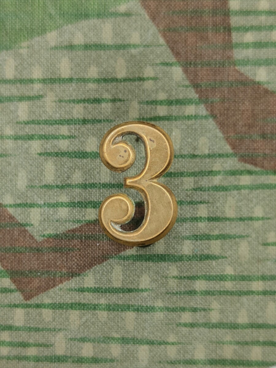 Die Nummer ist aus Knopfmetall gefertigt und misst ca. 25 mm in der Höhe. Die Nummer wird oberhalb des Schirms am Hutband mittels Befestigungsdrähten montiert. Sie wurden für die Tschakos der Ord. 1869, 1875, 1888 und 1898 verwendet.