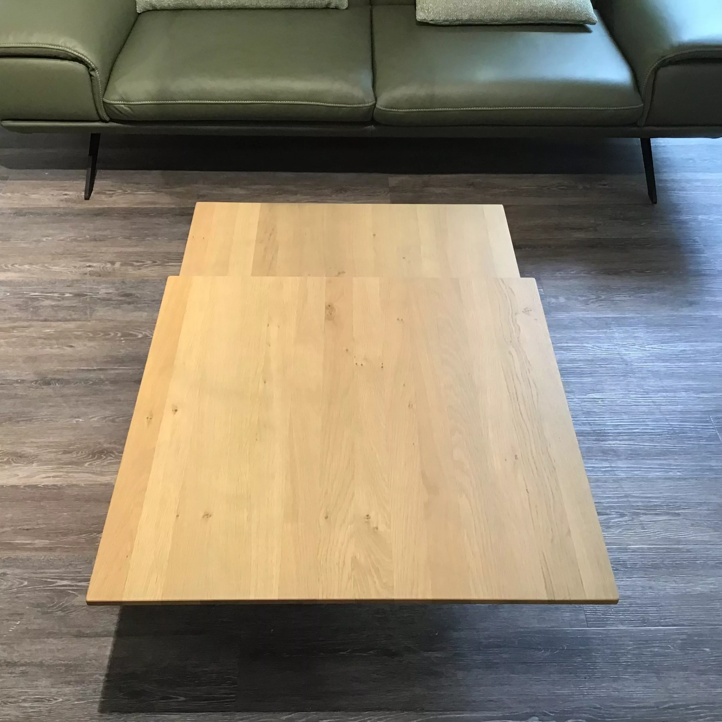 - Tischplatte und Ablage aus Wildeiche bianco gewachst und geölt
