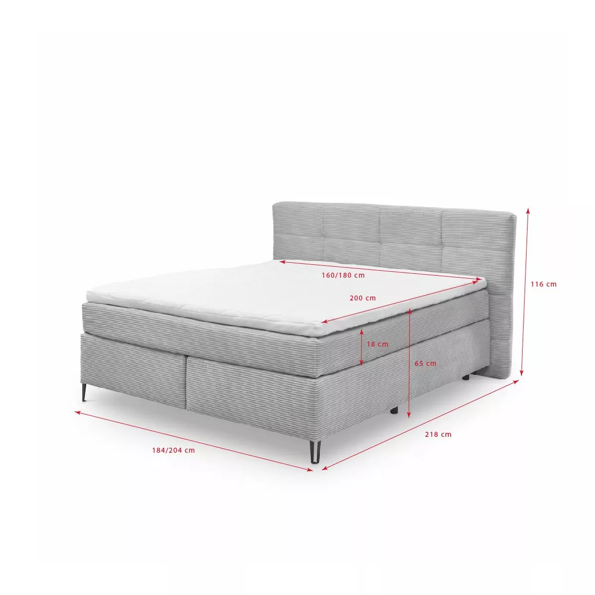 Fairfield ist in verschiedenen Größen verfügbar. Wählen Sie die Liegefläche mit 160 x 200 oder 180 x 200 cm ganz nach Ihrem Bedarf.