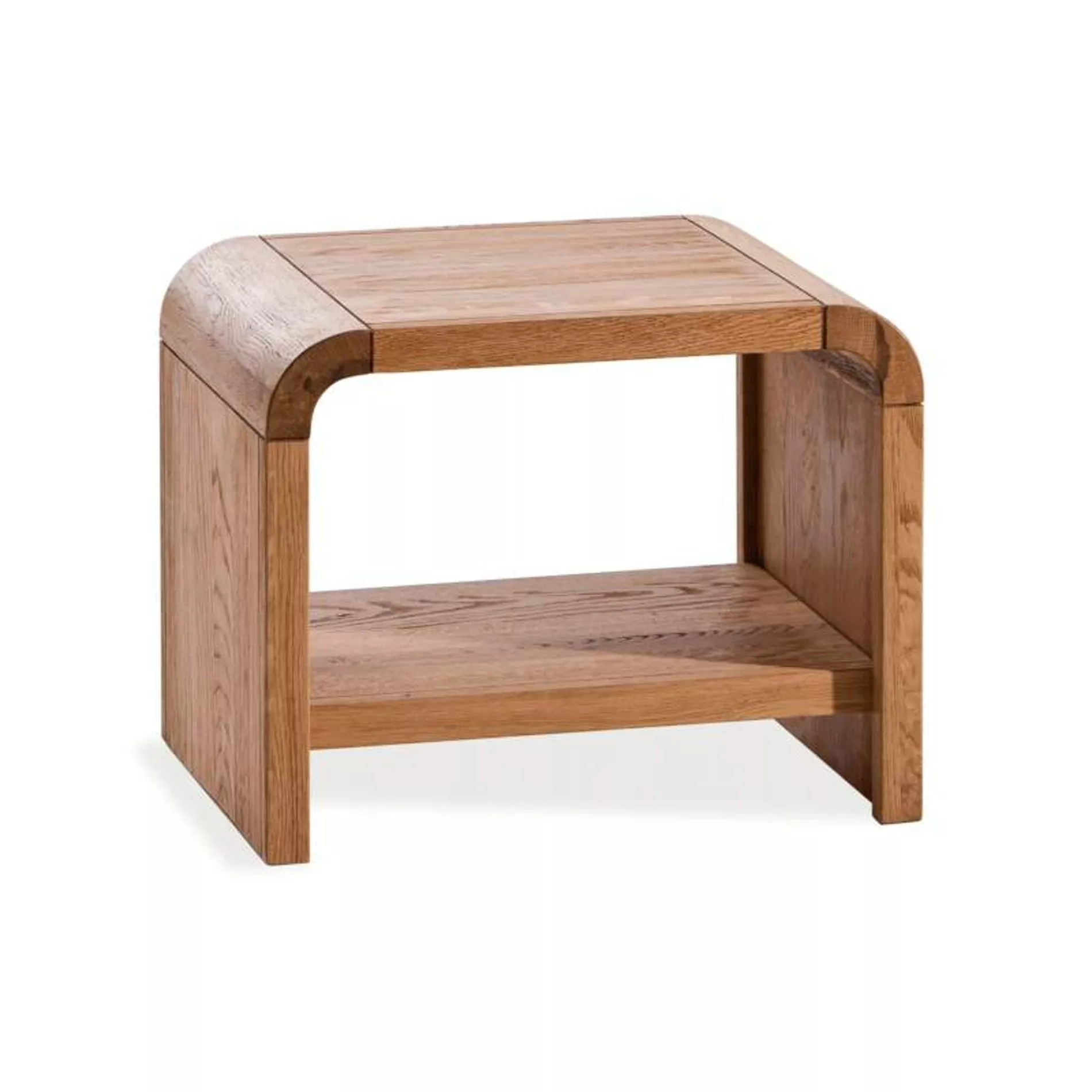 Durch die besondere Form der Ecken, die aus gerundeten Elementen bestehen, bekommt der Plato Nachttisch seine besondere Form. Zusammen mit der Maserung der Eiche, die gebürstet und geölt ist, entsteht eine natürliche Optik. Zudem macht die massive Eiche den Nachttisch stabil und langlebig.